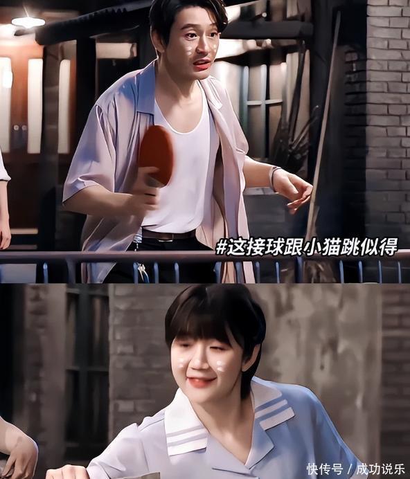 奥运冠军客串表哥黄晓明的新剧《小城大事》,本就是休整期里一次轻松的尝试——剧组缺个会打球的角色,她刚好在场,临时救个急,演了个叫“小陈”的80年代球手。蘑菇头、工装裤,往球台前一站,那股子飒劲儿根本不用演。 最出圈的是那段“菜刀当球拍”:黄晓明演的角色输了球,抱怨球拍不行,陈梦直接抄起灶台上的菜刀,反手一接,动作利落,还笑着甩出一句“强者从不抱怨环境”。没替身、没特效,全靠真本事,连她自己后来都笑说:“拿菜刀反而更顺手。”